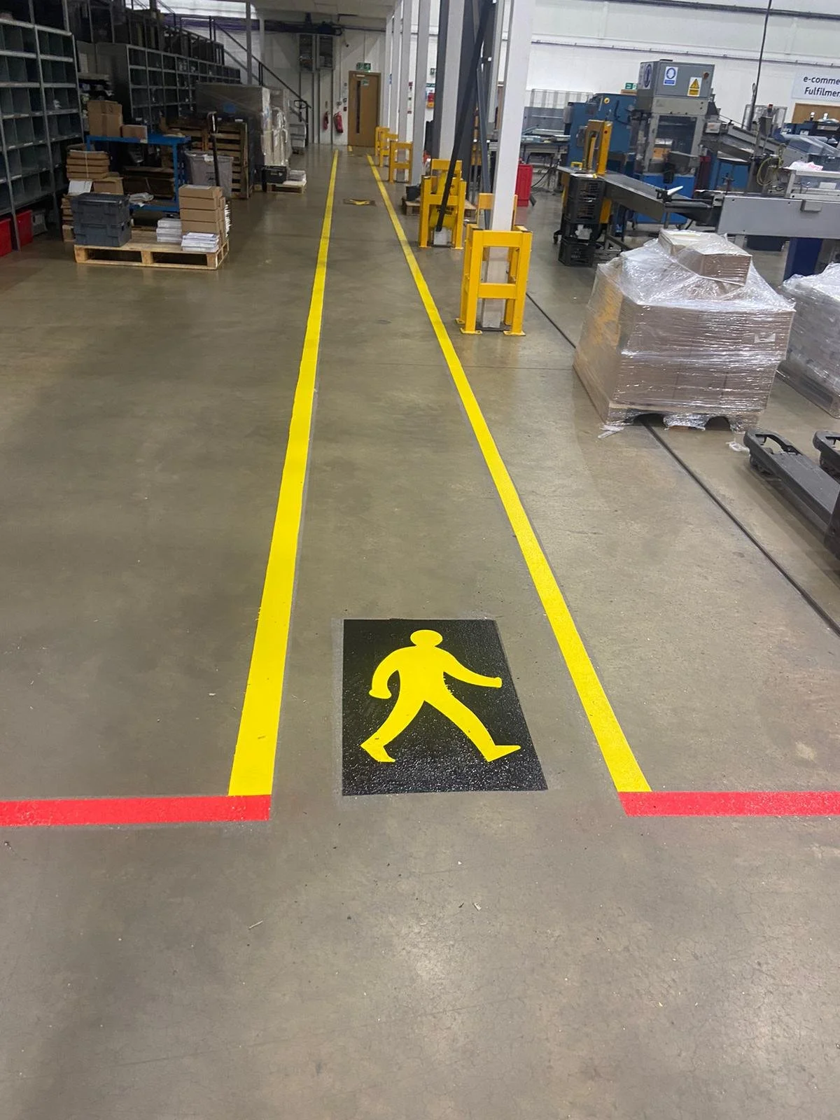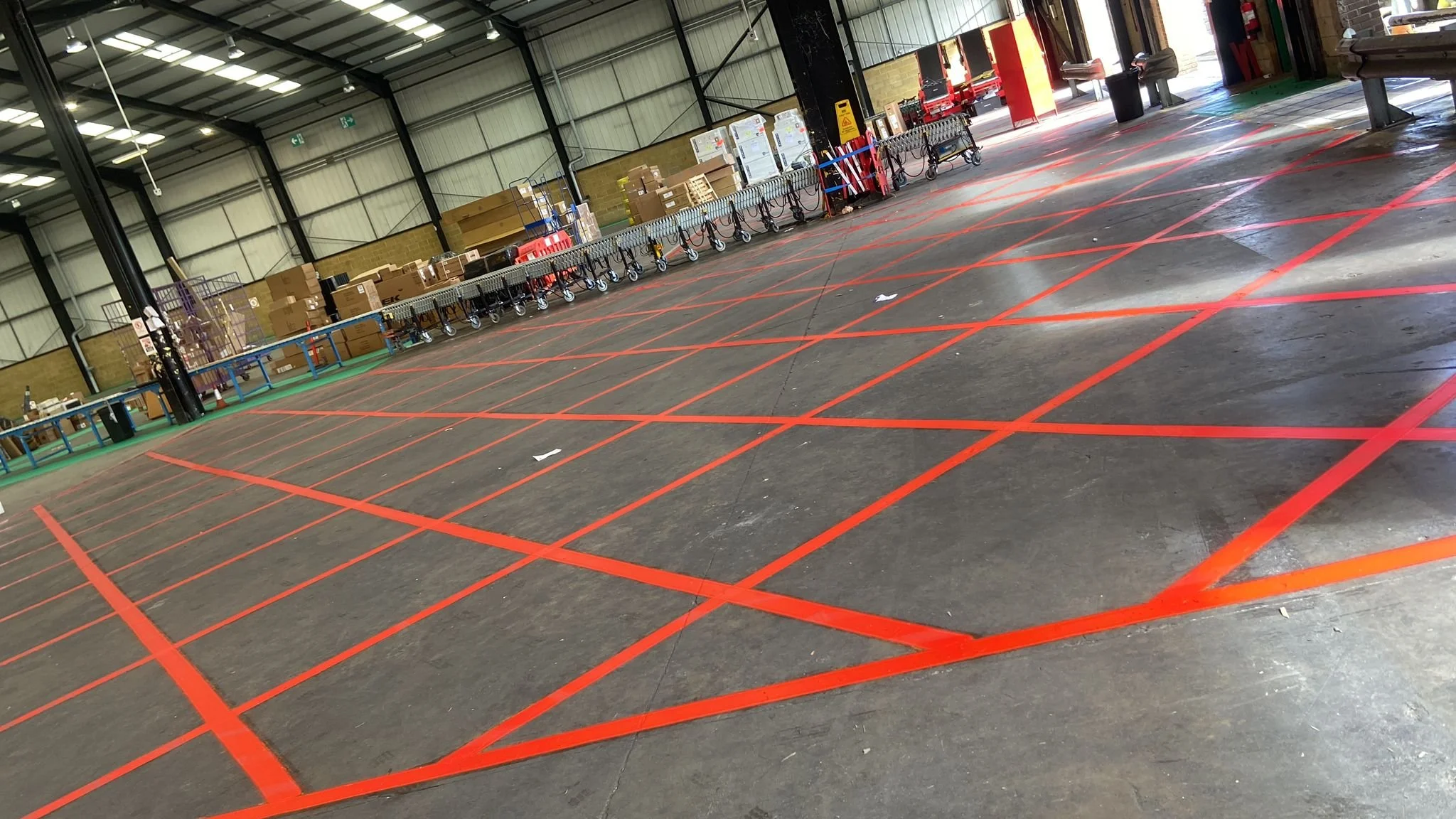 Within warehouses and industrial facilities, floor markings are essential for maintaining safe and efficient operations. Clear markings help define vehicle routes, pedestrian walkways, storage zones and safety areas, reducing the risk of accidents while improving workflow.